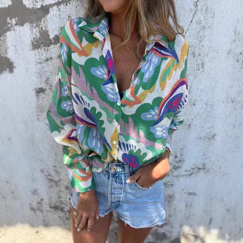 Damskjorta – Lös Passform – Långa Ärmar – Bomull – Grafiskt Tryck