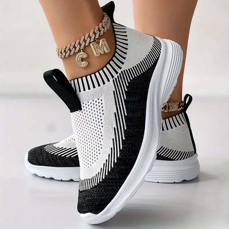 Dames sneakers slip-on – stickat andningsbart tyg – flexibel passform – mjuk sula