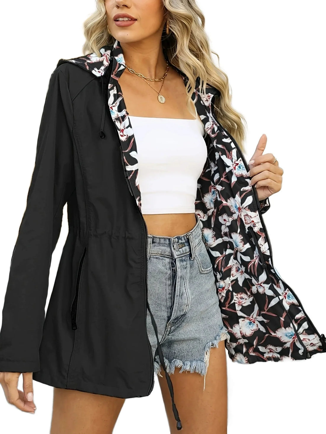 Damer Vindjacka – Figursydd Passform – Huva – Justerbar Midja – Halvlång