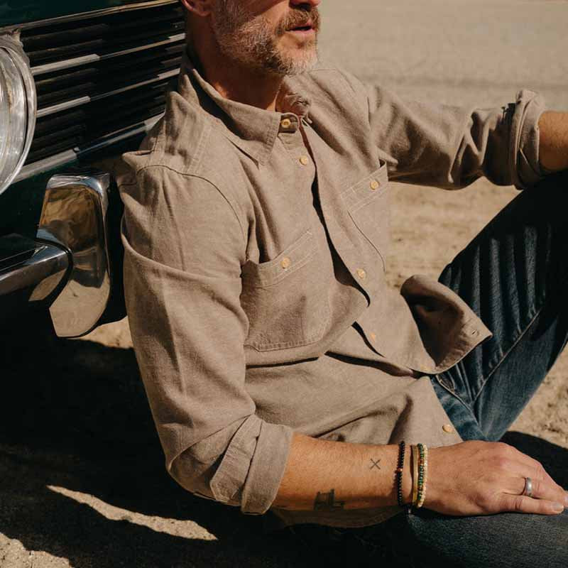 Herrskjorta – Linne Bomull – Relaxed Passform – Långärmad Avslappnad Knäppning