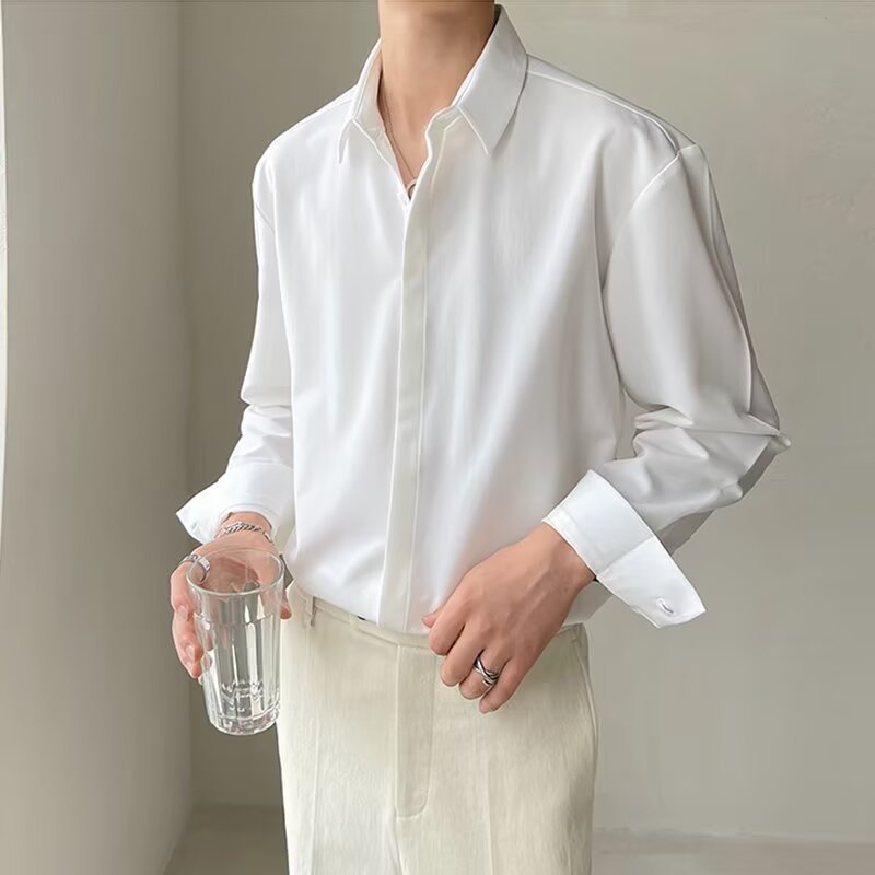 Herrskjorta – Slim Passform – Lyxigt Tyg – Långa Ärmar – Formell Stil