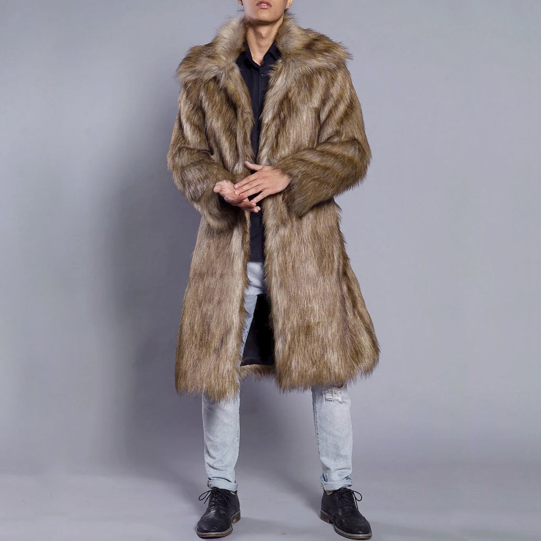 Herr Lång Kappa – Oversized Passform – Konstpäls – Öppen Front – Notch Revers