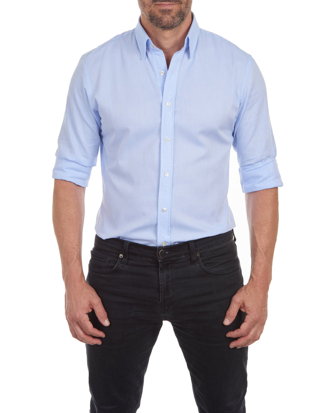 Herr Skjorta – Avslappnad Passform – Andningsbart Material – Mao Krage – Uppvikbara Ärmar