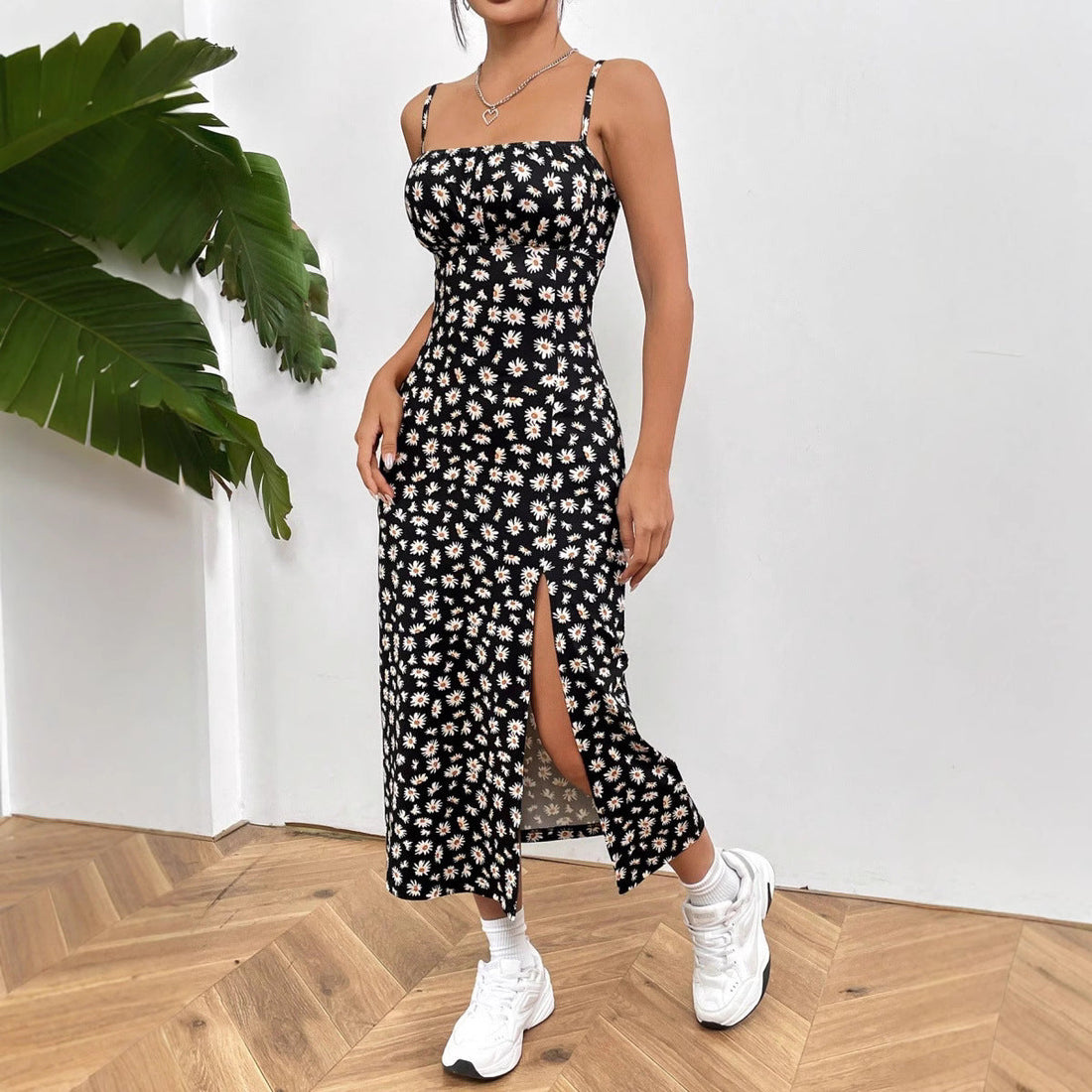 Damer Sommarklänning – Slim Fit – Bustier Topp – Spagettiband – Midi med Blommönster