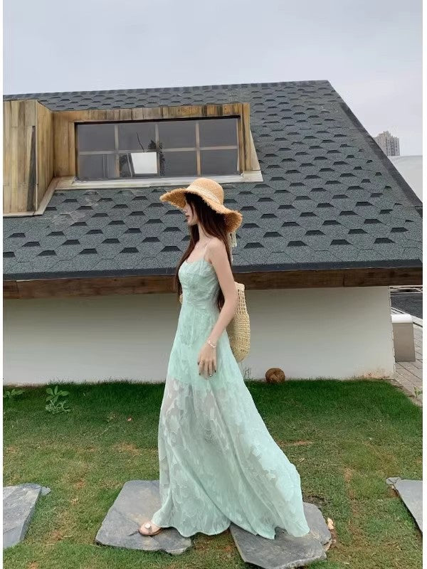 Dam Sommarklänning – Bomull Linne – A-linje Flödande Passform – Justerbara Band – Maxi Längd