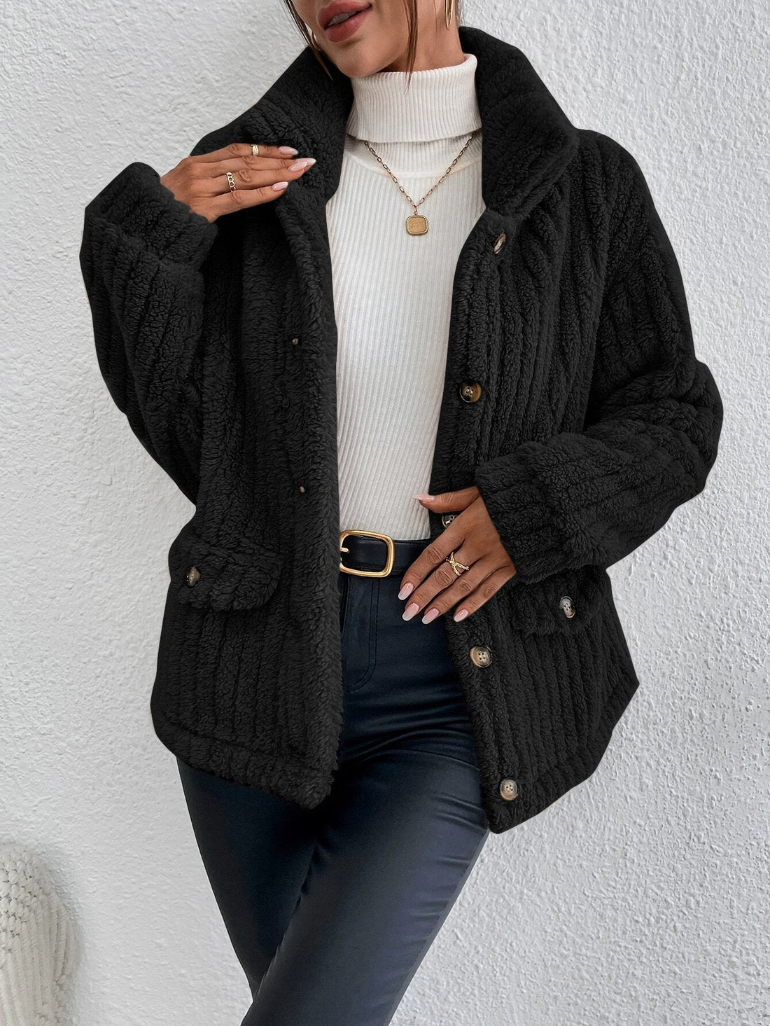 Dam Jacka – Oversized Passform – Sammetmjuk – Knäppning – Med Fickor