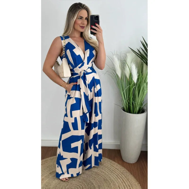 Damer Jumpsuit – Linnelook – Vida Ben – V-Ringning – Midjebälte – Löst Sittande
