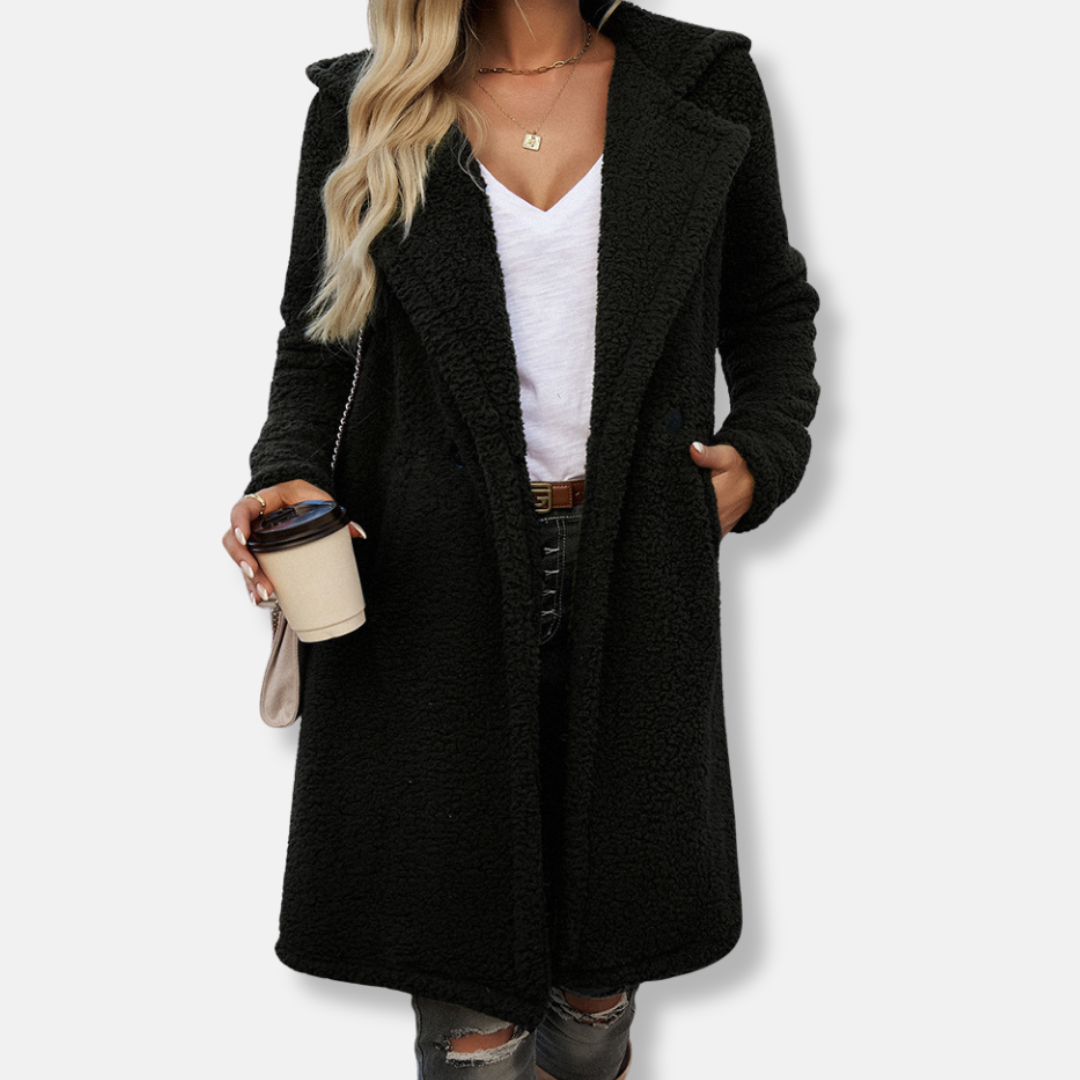Dam Jacka med Huva – Oversized Passform – Plysch Tyg – Kattöron – Asymmetrisk Fåll
