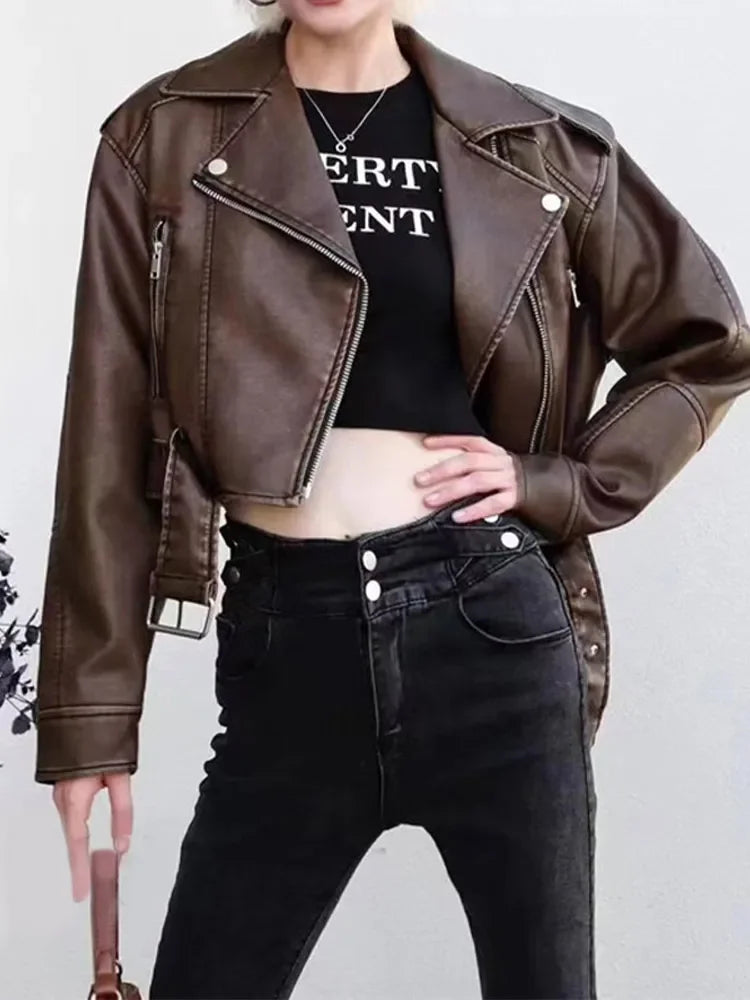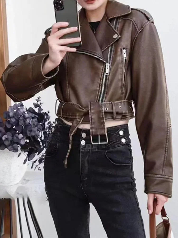 Dames Leren Bikerjas - Getailleerd - Asymmetrische Ritssluiting - Met Riem en Epauletten is de perfecte leren jas voor dames. Deze getailleerde bikerjas heeft een asymmetrische ritssluiting, riem en epauletten voor een stoere look. Stijlvol en comfortabel!