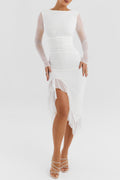 Dam Aftonklänning – Slim Fit – Genomskinliga Långa Ärmar – Volanger Asymmetrisk Fåll