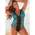 Upptäck dambaddräkten – Djup urringning – Snabbtorkande stretch – Banddetaljer framtill – Naturmönster från Amstel-Mode. Denna bekväma baddräkt med smickrande djup urringning och trendiga banddetaljer torkar snabbt och är försett med ett vackert naturmönster. Perfekt för stilfulla dagar vid vattnet.