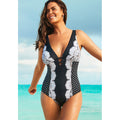 Dam baddräkt – Djup urringning – Snabbtorkande stretch – Remmar framtill – Naturmönster