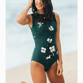 Dam baddräkt – Högsluten – Blommönster – Mesh detalj – Åtsittande modell