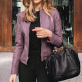 Dam bikerjacka – Konstläder croppad modell – Slim passform – Dragkedja – Stående krage