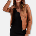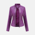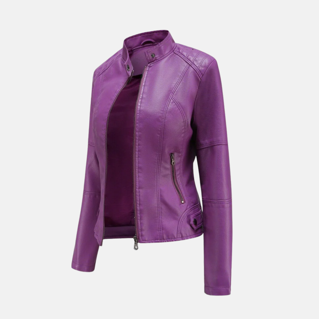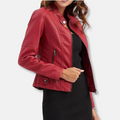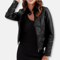 Dam Bikerjacka – Slim Fit – Konstläder – Uppstående Krage – Dragkedjefickor – Croppad Modell