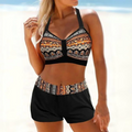 - Design: Trendig halterneck-topp med höga midjeshorts och intrikat mönster
