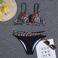 Dam Bikini Set – Förformade Kupor – Justerbara Axelband – Blommönster – Rynkad Topp