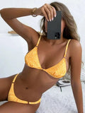 Dam Bikiniset – Triangel Modell – Justerbar Passform – Blommönster – Metalliska Detaljer