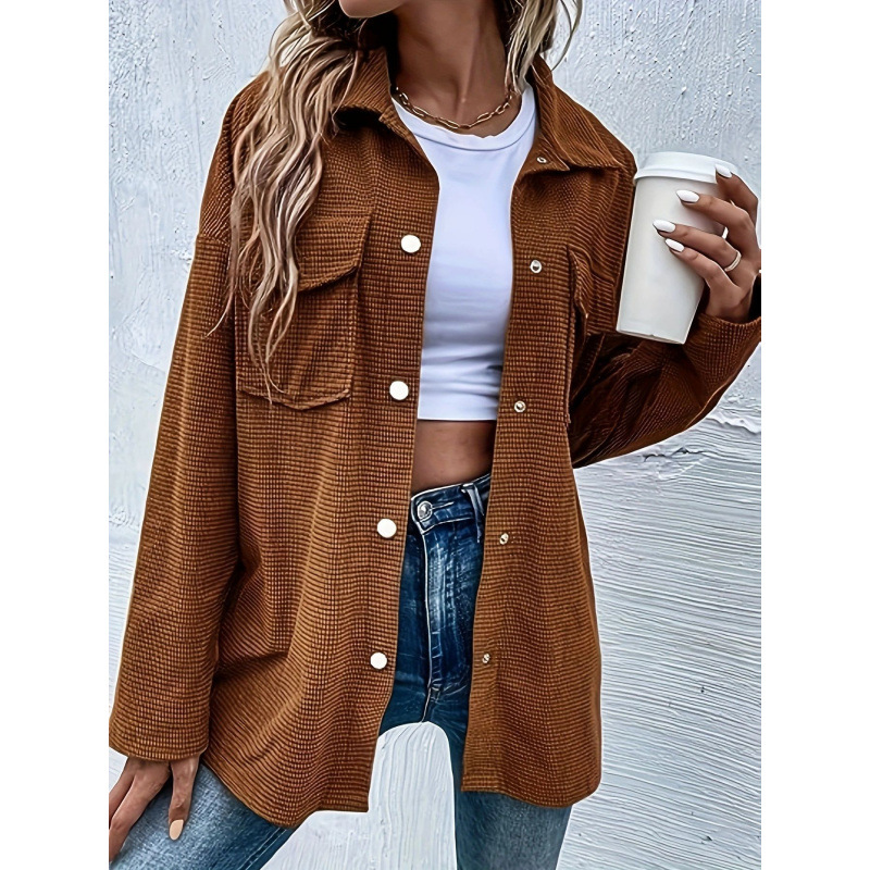 Dam Kavaj – Oversized Passform – Bomullslook – Knappar Framtill – Bröstfickor