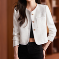 Dam Blazer – Skräddarsydd Passform – Bouclé Struktur – Rund Hals – Cropped Modell – Knäppning
