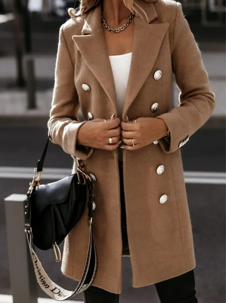 Dam Blazer – Skräddarsydd Passform – Dubbelknäppt – Lyxigt Tyg – Mellanlång Elegant Snitt