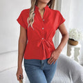 Dam Blus – Figurnära Passform – Midjebälte – Bomull – Kort Ärm – Knäppning