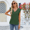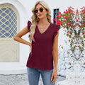 Dam Blus Kort Ärm – V-Hals – Avslappnad Passform – Rynkade Ärmar – Andningsbar Textur