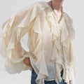 Dam Blus – Lös Modell – V-Ringning – Lång Ärm – Luftigt Tyg – Volang Detalj