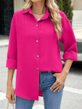 Dam Blus med Långa Ärmar – Ledig Passform – Knappstängning – Andningsbart Material
