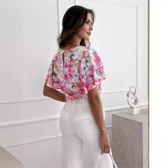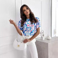 Dam Blus – Relaxad Passform – Volang Ärmar – Andningsbart Material – Blommönster