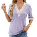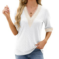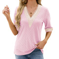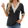 Dam Blus – Avslappnad Passform – V-Ringning med Spets – Armbågsärm – Andningsbar Struktur