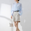 Dam Blus – Avslappnad Passform – Genomskinligt Tyg – Puffärmar – Stående Krage