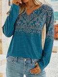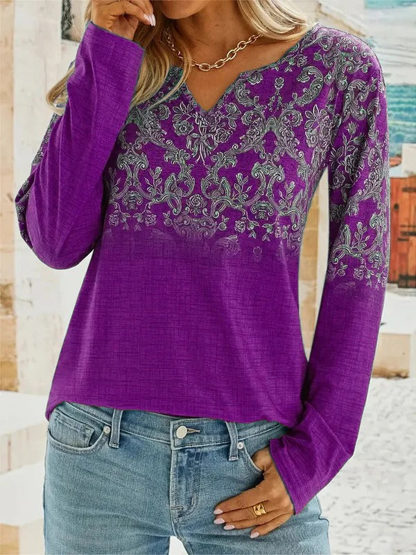 Dam Blus – Avslappnad Passform – V-ringning – Blomsterbroderi – Andningsbar Bomullsblandning