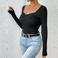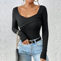 Dam Blus – Slim Fit – Ribbad Struktur – Omlott – Långa Ärmar Elegant