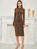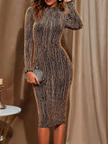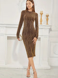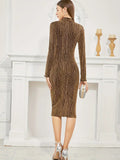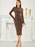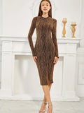 Dames Bodycon Jurk - Ribstof - Midi Lengte - Lange Mouw - Elegante Pasvorm van Amstel Mode. Deze elegante midi jurk met lange mouwen en ribstof textuur omarmt je figuur perfect. Ideaal voor een stijlvolle en comfortabele look voor diverse gelegenheden.