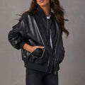 Trendigt Amstel-Mode bomberjack, oversized med glansig finish. Denna damjacka kombinerar en avslappnad passform med en lyxig, glansig finish. Med en stilren dragkedja och ribbade muddar är denna oversized jacka en riktig blickfångare för varje modern kvinna. Perfekt för en ansträngningslös, chic look.