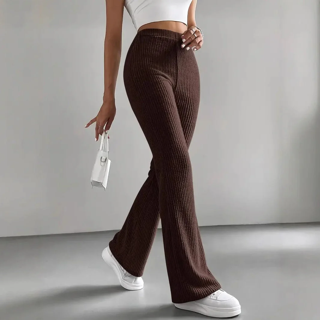 Gebreide Hoge Taille Wijde Pijpen Broek