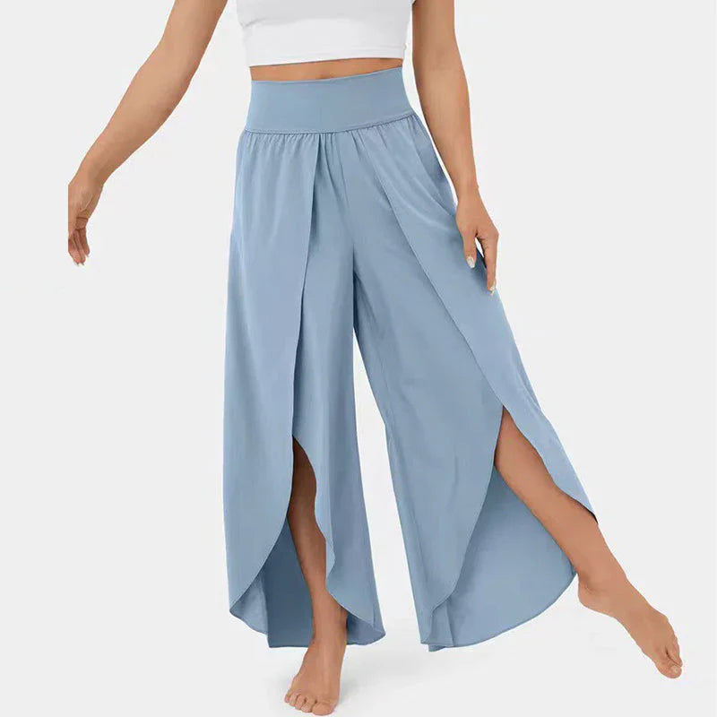 Dam Byxa med Vida Ben – Hög Midja – Luftig Bomullsblandning – Sidslitsar