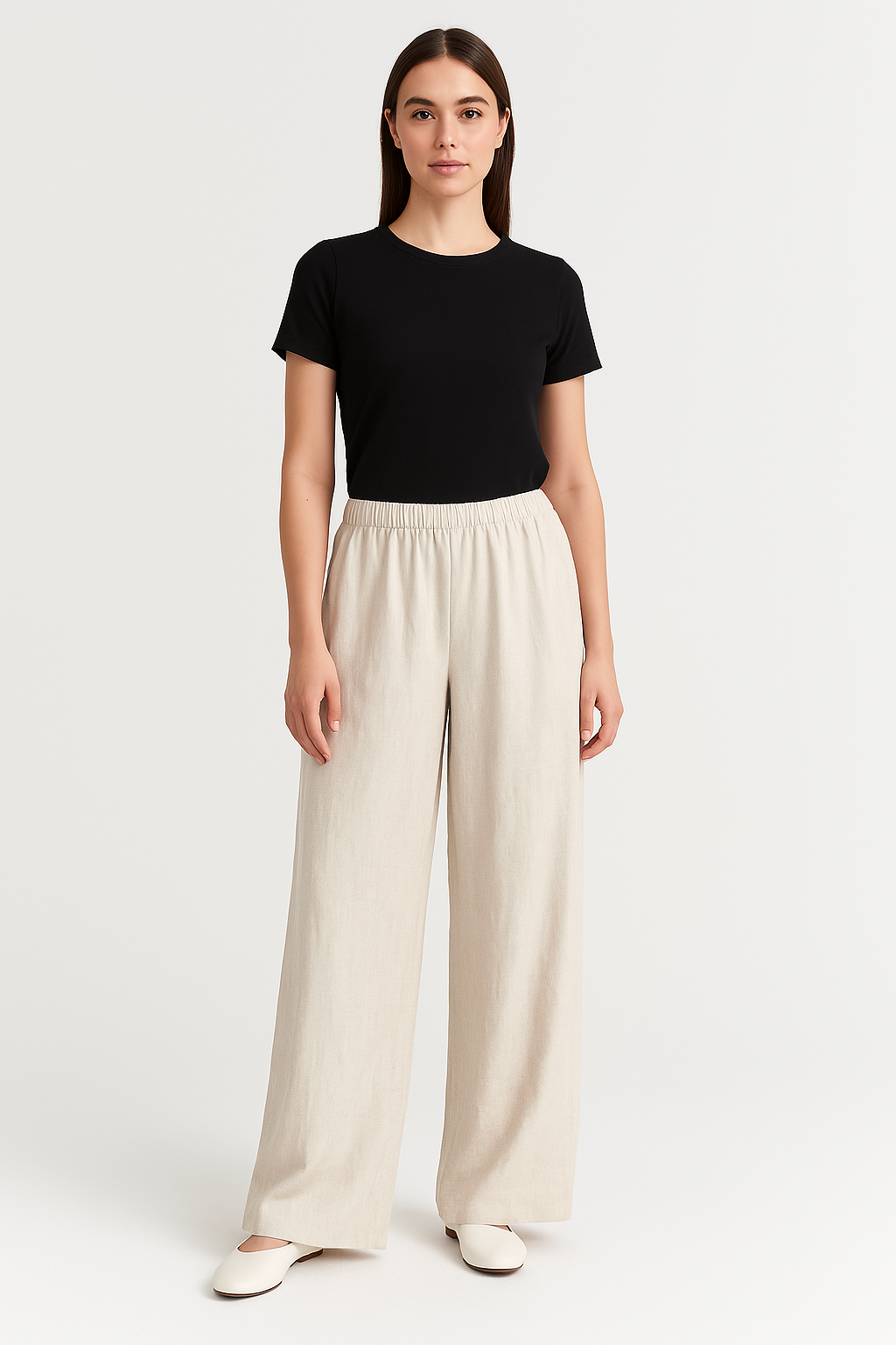Dam Byxa med Vida Ben – Relaxed Passform – Andningsbar – Elastisk Midja – Lång Modell