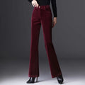 Deze damesbroek is vervaardigd uit ribfluweel en heeft een hoge taille met een slim fit pasvorm. De broek valt over de gehele lengte en biedt een gestroomlijnd silhouet.