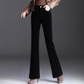 - Ontwerp: Hoge taille, slim fit met uitlopende pijpen en schuine voorzakken.