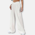 - Ontwerp: Relaxte pasvorm met wijde pijpen, hoge taille en V-vormige elastische tailleband.
