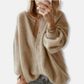Deze dames cardigan kenmerkt zich door een oversized relaxte pasvorm en een geborstelde textuur. De ballonmouwen met geribde manchetten completeren het ontwerp.