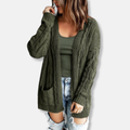 Dam Cardigan– Stickad – Relaxed Passform – Öppen Framsida – Kabelmönster – Med Fickor