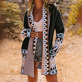 Deze dames cardigan is vervaardigd uit een zachte gebreide stof met een zichtbare textuur. Het model heeft lange mouwen, een open voorpand en is voorzien van een geometrisch patroon.
