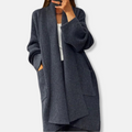 Deze oversized cardigan is uitgevoerd in een geribbelde breistructuur. Het model heeft een open voorpand, lange mouwen en valt tot halverwege het dijbeen.