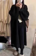Dam Cardigan Jacka – Oversized Passform – Ullstickad – Öppen Framsida – Lång Modell