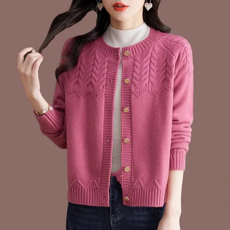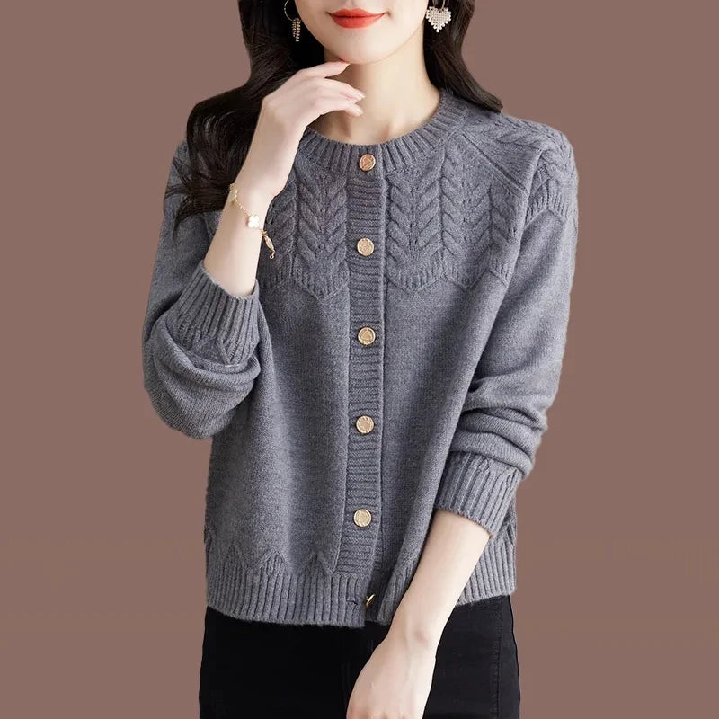 Dam Cardigan– Ullmix – Avslappnad Passform – Knäppning – Vintage Stickmönster