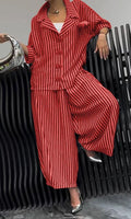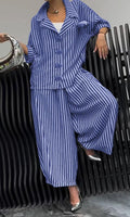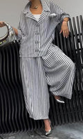 Damkavaj – Avslappnad Passform – Randigt Mönster – Bomull – Notchrevers – Knappar