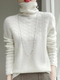 - Ontwerp: Slim fit met opengewerkt breipatroon, hoge col en lange mouwen.